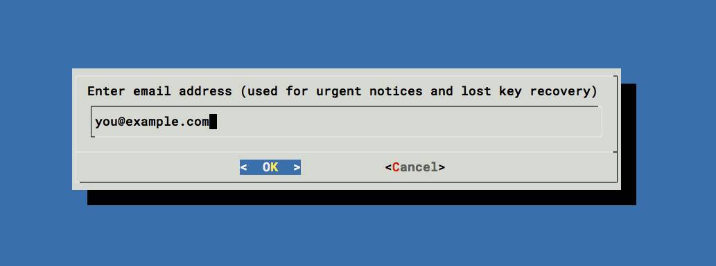 回车之后,letsencrypt 会进行一系列操作生成所需的证书文件,最后会有一个弹窗,提示你输入电子邮件地址,如果证书丢了,可以恢复。