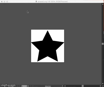 根据上面的知识,我们来制作一个矩形、三角形、圆形之间的形变动画就变得非常简单了。首先,定义这三个图形,这里图形的位置都在 0,0,100,100 之间。注意隐藏 triangle 以及 circle ,只显示 rect。