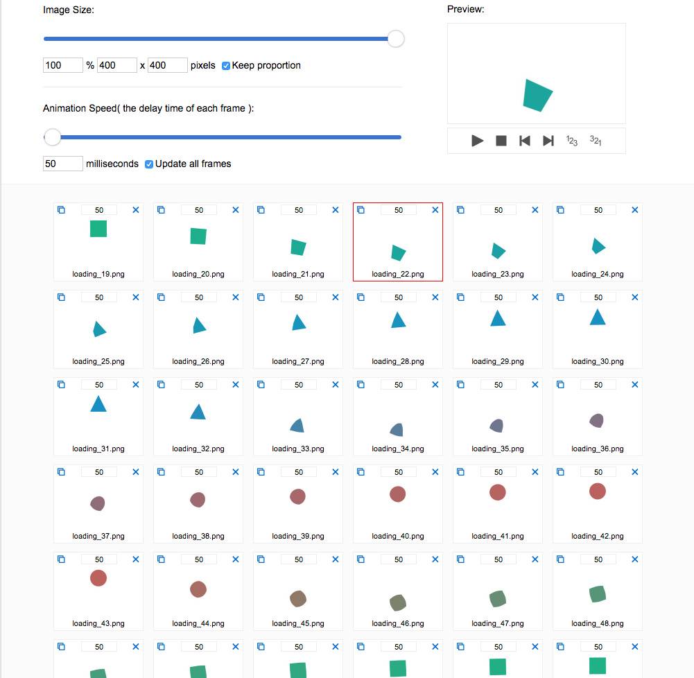 运行以后,可以在 loading 文件夹里面看到所有截屏出来的图片,将多余的图片剔除掉以后,上传到 gifcreator 上,调整一下速度,然后导出即可。
