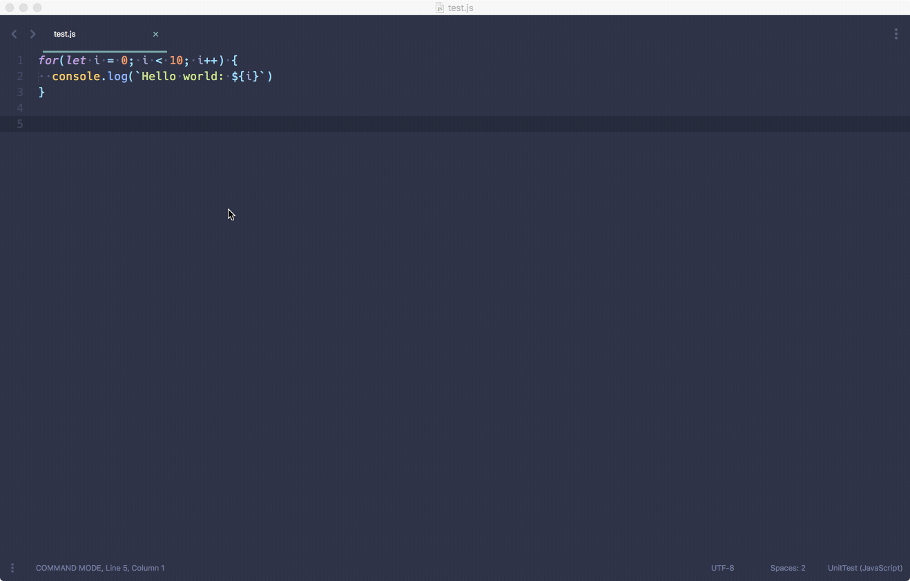 配置好以后我们的插件就可以工作了,按下 ctrl+- 会发现最前面插入了 Hello, World!。
