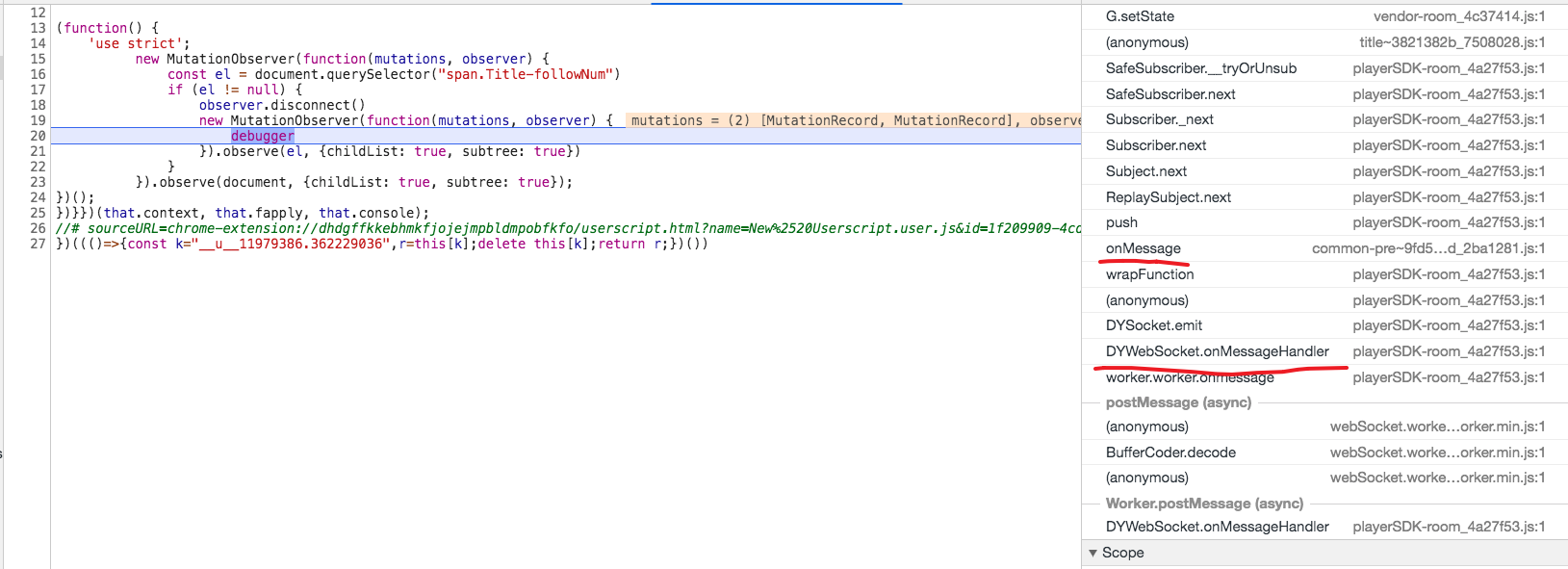 从上面的调用栈可以看出,数据来源自 WebSocket。
