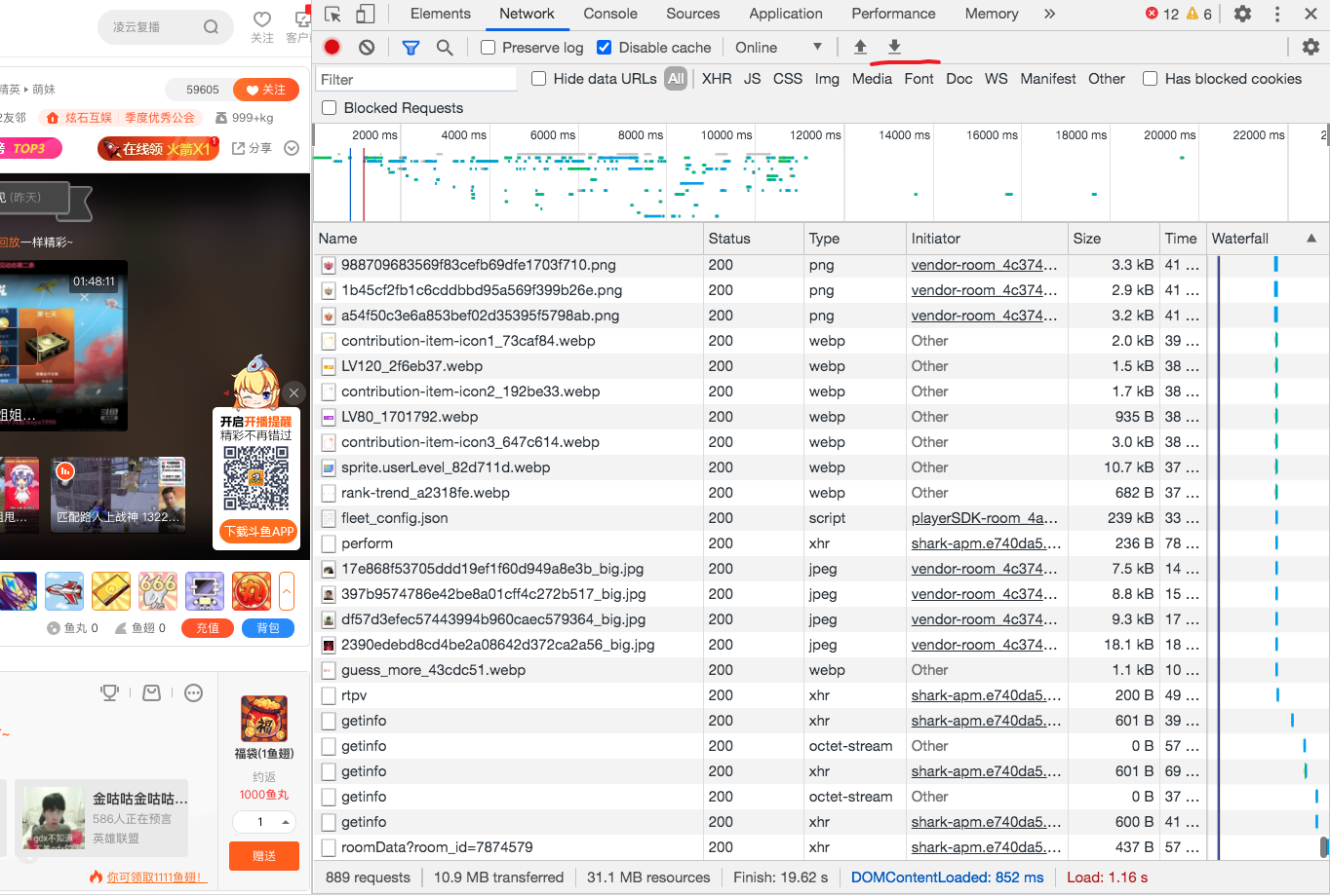 - 使用 Headless Browser。也就是使用一个完整的浏览器来渲染整个页面,然后获取 DOM 中的值。这个是兜底办法,永远可行,但是缺点是效率太差。大家可以看一下打开斗鱼直播间页面的速度,正常情况下等到关注人数显示的时候至少需要 5 秒钟。